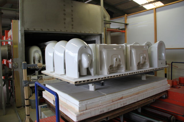 Im weiteren Verlauf der Werksbesichtigung lernten die Azubis die Arbeitsgänge beim Fertigen von Sanitärkeramik kennen, die im Wesentlichen aus den natürlichen Rohstoffen Ton, Kaolin, Quarz und Feldspat besteht. Diese werden zunächst aufbereitet und mit Wasser vermischt. Den in Formen gegossenen Teilen wird dann das Wasser wieder entzogen und glasiert werden sie nach der Trocknung in einem über 120 Meter langen Ofen bei einer Temperatur von ca. 1260 Grad Celsius gebrannt.