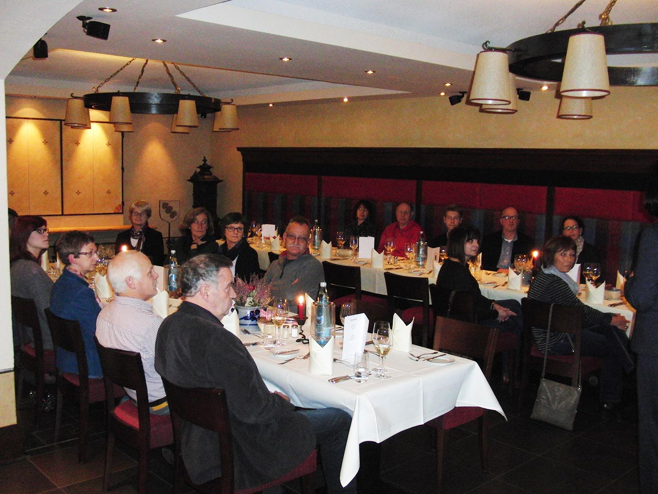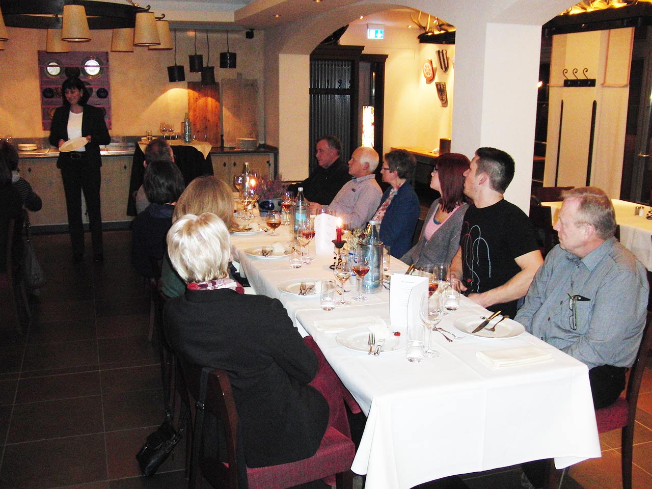Die Industriemeistervereinigung Frankenberg lud am 21.11.14 zum Kurs " Benimmregeln im Restaurant " im Alt Battenberg ein. Frau Monika Huft (Bild2) (Fa. Gastronomie mit Herz) erklärte bei einem 3 Gänge Menü , wie man sich in der heutigen Zeit im Restaurant zu benehmen hat. Anhand von Praxisbeispielen, konnten die Mitglieder selbst Hand anlegen und beim sehr leckeren Essen, ihr gelerntes in die Tat umsetzen. Wir bedanken uns nochmal für einen sehr interessanten und aufschlussreichen Abend.