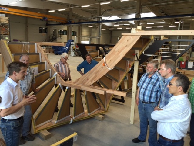 25 Personen nahmen an der Betriebsbesichtigung im neuen Werk der Finger Holzbau GmbH - besser bekannt als Finger Treppen in Frankenberg teil. Es arbeiten zur Zeit 33 Personen im Einschichtbetrieb, die Holztreppen sowie ca. 15.000 Treppenstufen pro Jahr in verschiedensten Ausführungen überwiegend für Finger Haus produzieren - aber auch für den Endkunden ist es möglich bei Finger Holzbau eine Treppe in Auftrag zu geben. 2 Gruppen, die geführt worden sind von Herrn Mühlbächer und dem Betriebsleiter Michael Boucsein, besichtigten den Wareneingang in dem verschiedenste Holzarten gelagert werden, die mechanische Bearbeitung, die Schleiferei bis hin zur Lackiererei und die Endmontage. Das neue Werk wurde im Bereich der Arbeitsabläufe optimiert, da man ja bereits langjährige Erfahrung aus dem alten Werk in Bottendorf hatte. Mit den 2 CNC Maschinen ( eine neue / eine vorhandene ) und der neu angeschafften Breitbandschleifmaschine von Heesemann ist man für die Zukunft gut gerüstet und hat noch Luft für eine weitere Schicht. Bemerkenswert für die Besucher war, daß es zur Zeit länger dauert eine Treppe versandfertig zu machen sprich vor der weiteren Benutzung im Rohbau zu schützen, als die eigentliche Fertigungszeit. Zum Schluss überreichte die IMV das traditionelle Erinnerungsschild aus Edelstahl zu dieser gelungenen Veranstaltung. Die IMV bedankt sich nochmal ganz herzlich bei der Finger Holzbau GmbH