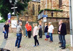 An einem schönen lauen Sommerabend besichtigte eine kleine Gruppe der IMV die Altstadt in Frankenberg. Frau Balz, als ausgebildete Stadtführerin begann mit dem Rundgang in der Liebfrauenkirche, die 1380 aus eigenen Satdtmitteln erbaut wurde. Anschließend ging es weiter zum Burgberg, bei dem man noch die Stadtmauern und Fundamente erkennen konnte. Nach diesem schönen Ausblick führte uns Frau Balz über den Obermarkt zum alten Rathaus, zum Stadthaus bis zum Steinhaus. Die wunderschön restaurieren Fachwerkhäuser sind einmalig in Ihrer Erscheinung, wenn man mal genauer hinschaut – so waren sich alle Teilnehmer alle einig. Gerade wenn man auf dem Untermarkt steht und Richtung Hotel Sonne zum alten Rathaus schaut merkt man erst, daß wir in Frankenberg eine wunderschöne Altstadt haben. Den Abschluß machte die Gruppe im Trauzimmer des alten Rathauses mit einigen antiken Möbeln in dem sich heute noch das „JA“-Wort gegeben werden kann. Wir bedanken uns nochmals bei Frau Balz für Ihre vielen kleinen Geschichten, die Sie uns zu den einzelnen Häusern und Sehenswürdigkeiten erzählen konnte.