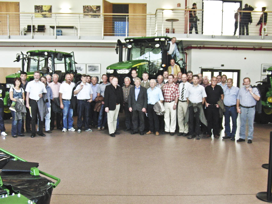 Die IMV Frankenberg besuchte am 01. September 2011 mit 38 Mitgliedern das John Deere Werk in Mannheim. Das Werk Mannheim ist der größte Produktionsstandort außerhalb der USA und der zweitgrößte Standort weltweit. Auf einer Fläche von 46 Hektar arbeiten 2.700 Mitarbeiter. Hier werden Traktoren der 5er, 6er und 7er Reihe gefertigt, welche einen Leistungsbereich von 51 KW - 147 KW (70 - 200 PS) abdecken. 1837 besaß John Deere, ein Hufschmied und Erfinder, nicht viel mehr als eine Werkstatt, ein ausrangiertes Sägeblatt aus Stahl und eine Idee. In Grand Detour in Illinois stellte er einen Pflug aus poliertem Stahl her, mit dem die Farmer eine saubere Furche in den klebrigen Lehmboden des Mittleren Westens ziehen konnten. An den bis dato verwendeten Holzpflügen blieb der Lehmboden hängen und so war das Pflügen eine schwierige und mühsame Arbeit. Diese einfache Idee war der Start zu einem Weltunternehmen. Heute erstreckt sich das Unternehmen auf die USA und Kanada, Europa, Brasilien, Russland, Indien und China. Unsere Mitglieder konnten während der Betriebsbesichtigung einen eindrucksvollen Blick in die Welt der Tracktorenherstellung nehmen. Neben der Zahnradfertigung, verschiedenen Bearbeitungszentren, Getriebemontage und Endmontage konnten wir das Museum und das Forum der John Deere Werke besichtigen. Für alle im Fertigungsprozeß befindlichen Tracktoren liegt ein Kundenauftrag vor. Es wird nicht in Serien gefertigt und es gibt auch keine Lagerhaltung. Alle Tracktoren werden nach Fertigstellung umgehend an ihre Besitzer gesendet. John Deere in Mannheim ist ein modernes inovatives Unternehmen. Die Dimensionen ihrer Tracktoren ist genauso beeindruckend wie ihr Herstellungsprozeß.