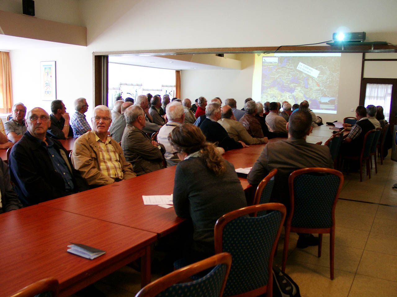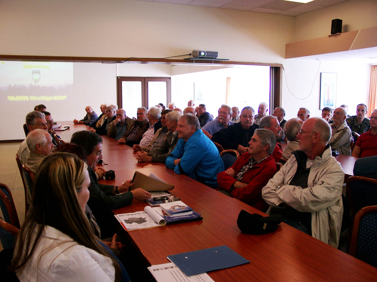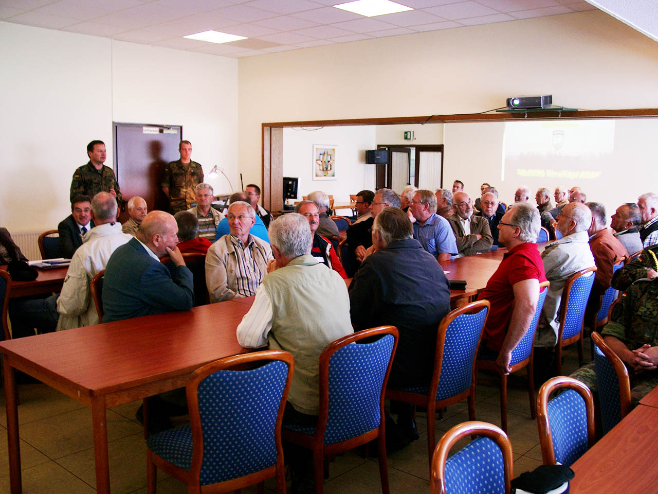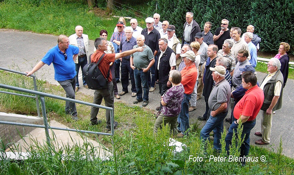 Frankenberg / Burgwald . Eine Exkursion auf dem Gelände der ehemaligen Luftmunitionsanstalt in der Gemeinde Industriehof, im allgemeinen auch mit dem Kurzbegriff „Muna“ bezeichnet und bekannt, unternahm die Industriemeistervereinigung (IMV) Frankenberg. Der 2. Vorsitzende des Kulturvereins Burgwald, Bernhard Bock, führte die rund 40-köpfige Besuchergruppe zu den Spuren aus der Zeit des zweiten Weltkriegs. Die große Teilnehmerzahl war ein klares Zeichen für das besondere Interesse, das viele Industriemeister für die Informationen über die Bedeutung und Einrichtung der ehemaligen Wehrmachtsanlage zeigten. Bernhard Bock, der in 1955 in Industriehof geboren wurde, hat sich sehr intensiv und detailliert mit der Historie seines Geburtsortes befasst. Bock hat viele Zusammenhänge nachgeforscht und konnte den Besuchern während des gut einstündigen Rundgangs einige interessante Hinweise aus der Zeit zwischen 1935 und 1948 geben. So zeigte er die alte Pferdetränke nahe der alten Wache am Ortseingang. Auch verwies er auf das Balken-W der Wehrmacht in den Giebelfachwerken der Wehrmachtsgebäude. Bock führte zum Wasserhaus und zum alten Bunker, der als Museum eingerichtet und im Herbst 2011 eingeweiht wird. Danach folgte ein Rundgang über den Waldweg zum alten Sportplatz. Unterwegs berichtete Bock, dass 125 verschieden große Bunker errichtet waren und in den Nachkriegsjahren gesprengt wurden. Immer wieder konnten alte Spuren aus den Kriegsjahren entdeckt werden. In den leeren Hallen siedelten sich nach dem Kriegsende verschiedene Industriebetriebe an. In der Grillhütte des Dorfgemeinschaftshauses Burgwald zeigte Bock eine Übersichtskarte der ehemaligen Wehrmachtsanlage, die sogar einen Gleisanschluss hatte. Bock hatte bei seiner Spurensuche auch Munitionshülsen gefunden. Alle Exkursions-Teilnehmer waren beeindruckt von den interessanten Informationen. IMV-Vorsitzender Holger Paulus dankte Bock für die sachkundige Führung, die vielen Teilnehmern neue Erkenntnisse brachte. Für die Arbeit des Kulturvereins Burgwald überreichte der IMV-Vorsitzende eine 100-Euro-Spende der IMV Frankenberg.