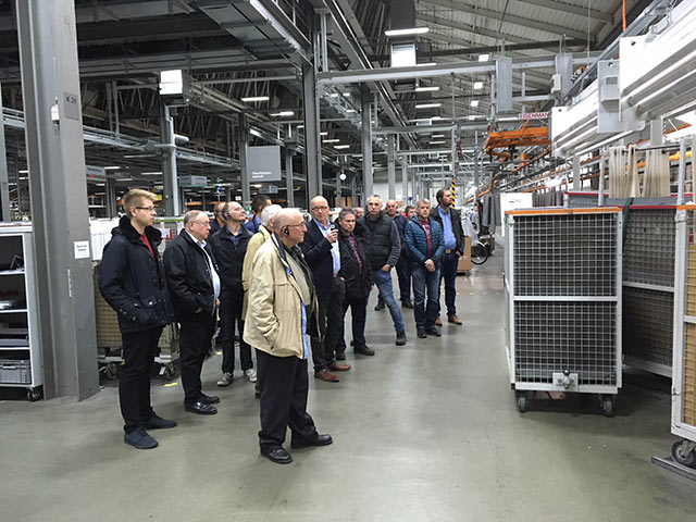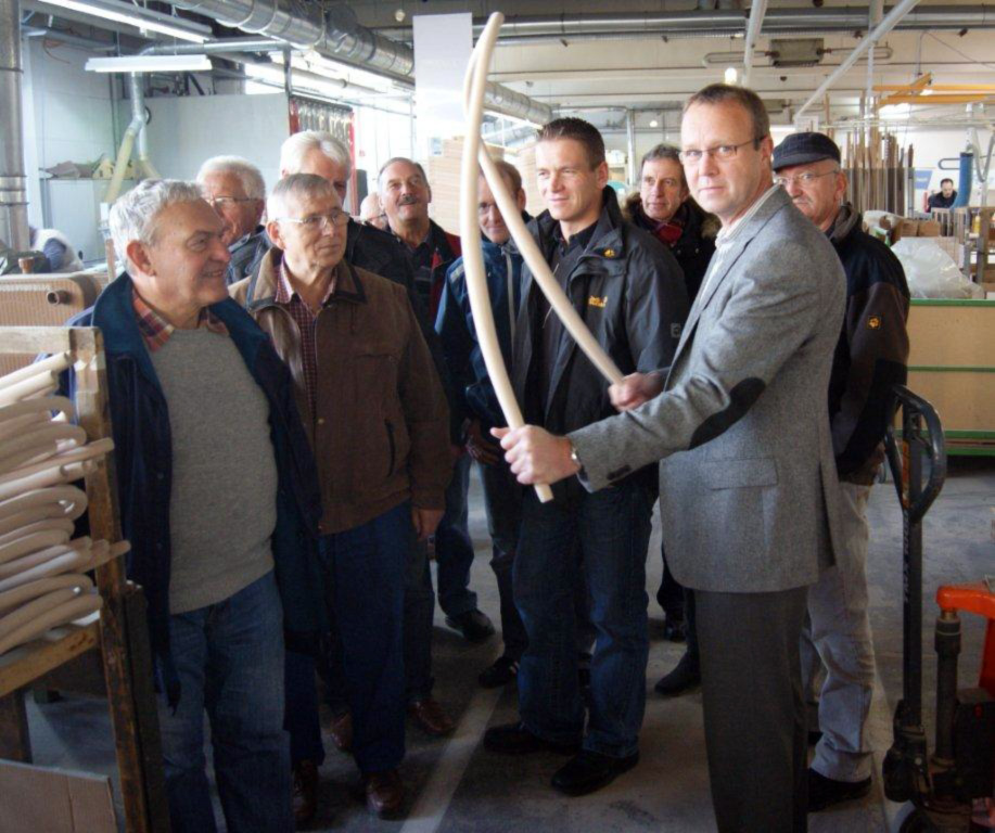 Rund 40 Mitglieder der IMV Frankenberg besichtigten das neu strukturierte Werk 1 in Frankenberg. Die Industriemeister besichtigten in 2 Gruppen den Wareneingang, die Schleiferei, die Holzbearbeitung, die Oberfläche und die Endmontage.