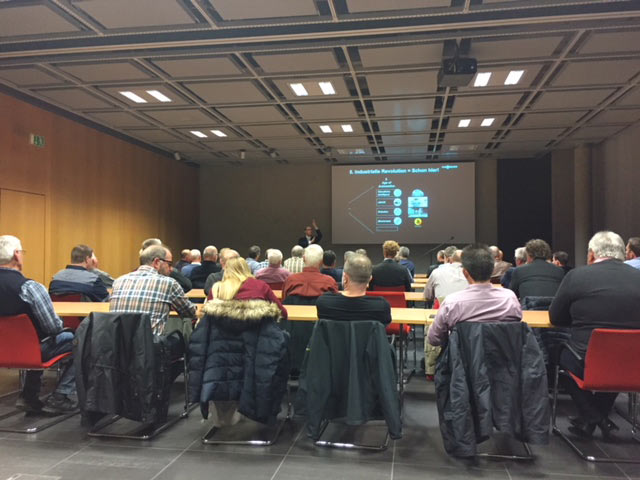 Am 24.11.16 trafen sich ca 40 Industriemeister im Alt Battenberg , zum Vortrag " Chancen und Herausforderung der vierten industriellen (R) Evolution. Herr Prof. Bienhaus ( beschäftigt bei der THM ) , hielt einen spannenden Vortrag und brachte immer praxisnahe Beispiele. So konnte das Plenum , diesem schnell folgen und selbst einschätzen was für ein Wandel vollzogen werden muss. Unser Dank gilt nochmal Herrn Prof. Bienhaus für einen gelungenen Vortrag und somit auch einen gelungen Vortragsabend.