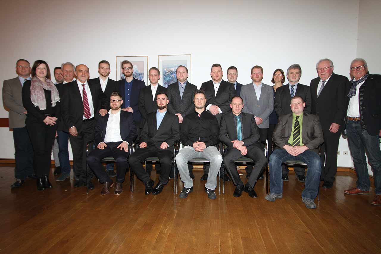 Frankenberg - "Sie waren sehr mutig, sehr tapfer und sehr ausdauernd." Mit diesen Worten hat Dr. Wilhelm Hirschmann von der Industrie- und Handelskammer am Dienstagabend in der Ederberglandhalle zwölf jungen Industriemeistern ihren Meisterbrief überreicht. Ihre Prüfung hatten die Absolventen schon Ende November abgelegt - nach einem zweieinhalbjährigen Kurs mit insgesamt 1100 Unterrichtstunden an der Fachschule für Technik in Frankenberg. Die frisch geprüften Industriemeister sind überwiegend in Betrieben der heimischen Metallindustrie beschäftigt, einige kommen aber auch aus den angrenzenden Regionen. "Durch den Kurs mit wöchentlich 14 Unterrichtstunden haben die jungen Industriemeister mit Schwerpunkt Metall ihre Kompetenzen erweitert und können damit ihren beruflichen Herausforderungen gerecht werden", gratulierte Bernd Kleem, der Leiter der Fachschule für Technik an der Außenstelle in Frankenberg. "Alle haben die Prüfung bestanden", formulierte er seine besondere Freude. Weiter erinnerte Kleem daran, dass der Kurs immer montags, mittwochs und samstags neben der normalen Arbeitszeit stattfand. "Durch diese hohen Anforderungen mussten persönliche Wünsche oft zurückgestellt werden." Sein Dank galt daher auch den Lebenspartnerinnen der frischgebackenen Jungmeister. Weiter appellierte er an eine "stetige Weiterbildung" - nur so könne mit der ständigen Weiterentwicklung der Technik Schritt gehalten werden. "Nur mit Weiterbildung ist der Wirbelwind Digitalisierung zu bändigen", so der Schulleiter. Letztlich zog Kleem ein positives Fazit: "Über qualifizierten Nachwuchs muss man sich in den heimischen Industriebetrieben zunächst keine Sorgen machen." Durch ihre Ausbildung seien die Jungmeister in der Lage, sich jederzeit auf veränderte Methoden und Systeme in der Produktion sowie auf neue Strukturen in der Arbeitsorganisation einzustellen. "Den Wandel in den Unternehmen durch Industrie 4.0 können sie problemlos mitgestalten." Dr. Wilhelm Hirschmann von der IHK Kassel-Marburg machte darauf aufmerksam, dass der Meisterbrief der Industriemeister-Absolventen dem Bachelor-Abschluss an Hochschulen entspreche. "Diese Qualifikation berechtigt auch für die Zulassung zum Kurs Technischer Betriebswirt. Das ist eine tolle Sache", sagte Hirschmann. Die Fachschule für Technik werde alles daran setzen, einen solchen Kurs in Frankenberg zu positionieren, versprach dabei Vorsitzender Bernd Schellenberger. Unter den ersten Gratulanten waren nicht nur Frankenbergs Bürgermeister Rüdiger Heß, Dieter Kocab als Vorsitzender des Prüfungausschusses und Holger Paulus, der Vorsitzende der Industriemeistervereinigung Frankenberg, sondern auch Vertreter der Geschäftsleitungen, in den die jungen Industriemeister beschäftigt sind. Die Festrede zum Thema "Der Meister - Historisch und Heute" hielt Steffen Buch, der Personalleiter der Viessmann-Werke. (mjx)