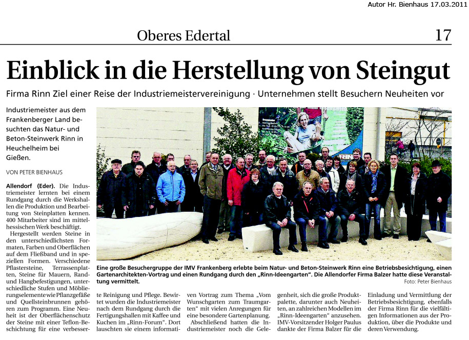im „Rinn-Ideengarten" anzusehen. IMV-Vorsitzender Holger Paulus dankte der Firma