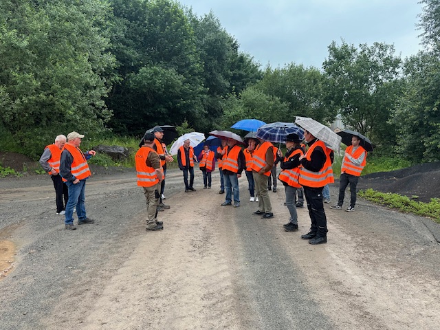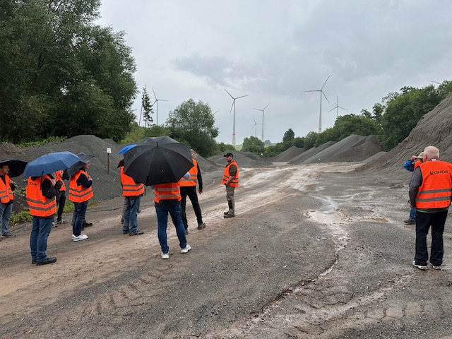 In dem Steinbruch werden durch Sprengungen große Steine bzw, Fels aus dem Berg herausgesprengt, der dann mittels eines überdimensionaler Bagger zu dem sogenannten Vorbrecher weiterbefördert wird. Dort läuft das Gestein in eine Art Trichter, wo dieses dann mittels mechanischer Exzenterpressen zerkleinert wird. Auf Förderbändern wird das gebrochene Material dann weiter transportiert in weitere Zerkleinerer und wird dann schließlich durch einzelne Siebe nochmals sortiert, gewaschen und zwischengelagert. Die später nachgeschaltete Asphaltmischanlagen produziert dann computergenau über digitale Waagen den benötigten Asphalt der mit dem eigens zerkleinerten Diabas-Gestein und Bitumen und weiteren Bestandteilen vermischt wird. Die IMV Frankenberg bedankt sich bei der dem Unternehmen für die sehr interessante Besichtigung.