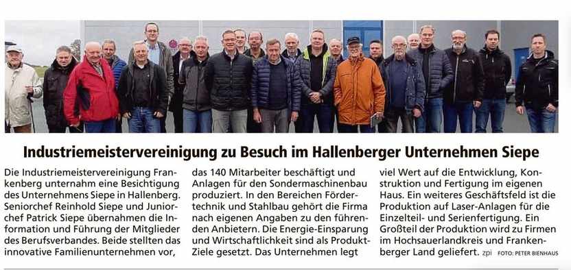 Die Industriemeistervereinigung (IMV) Frankenberg besichtige am